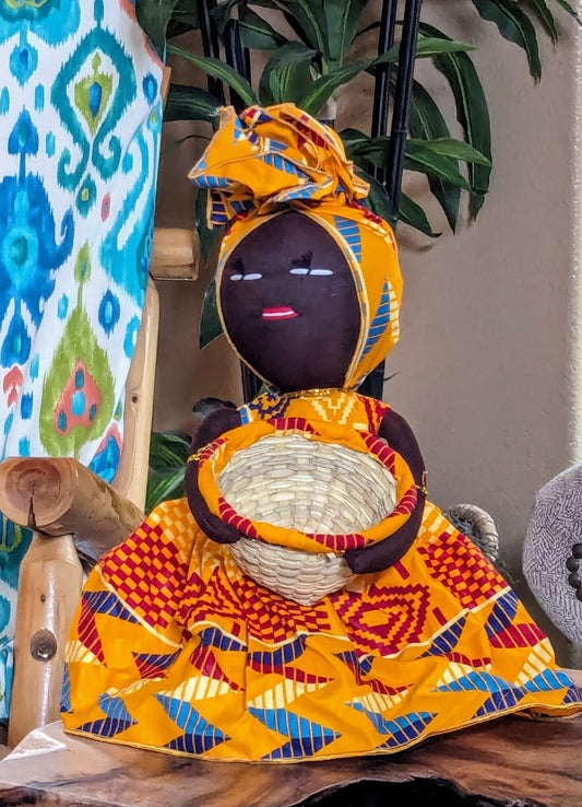 Orange Dot HANDMADE HAPPY ETHNIC DOLL W/ BASKET