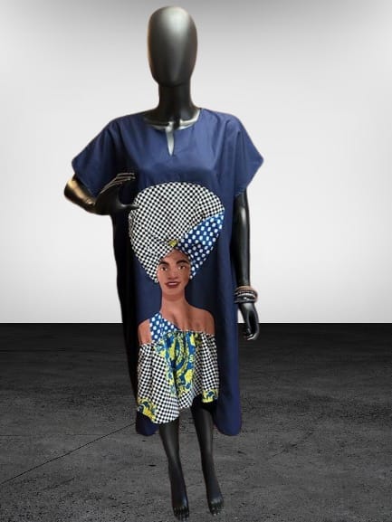 Beautiful Woman Face Dress w/ PocketsNavy Blue