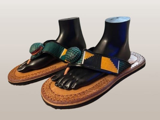 Men's Traditional Handmade Sandals/Slippers Green Pattern