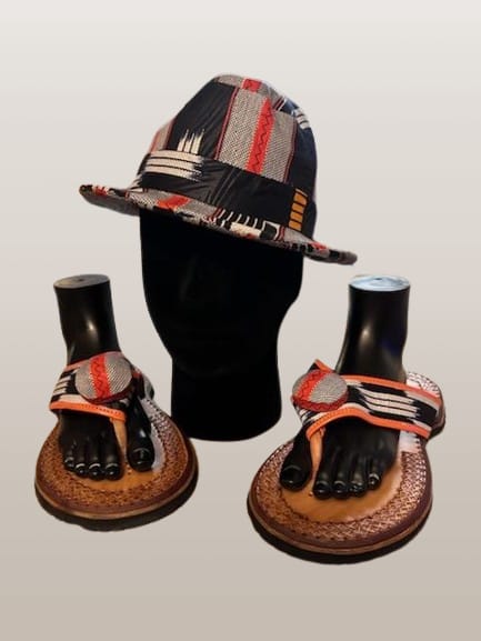 Men's Fedora Hat with Men's Sandals/Slippers Black Red Pattern
