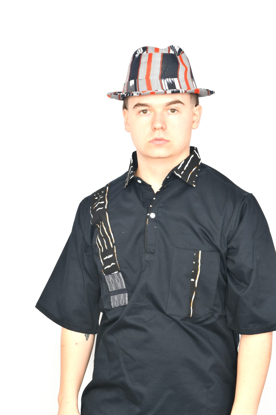 Akwaba Men's Shirts Short Sleeve Black w/ black & white collar design