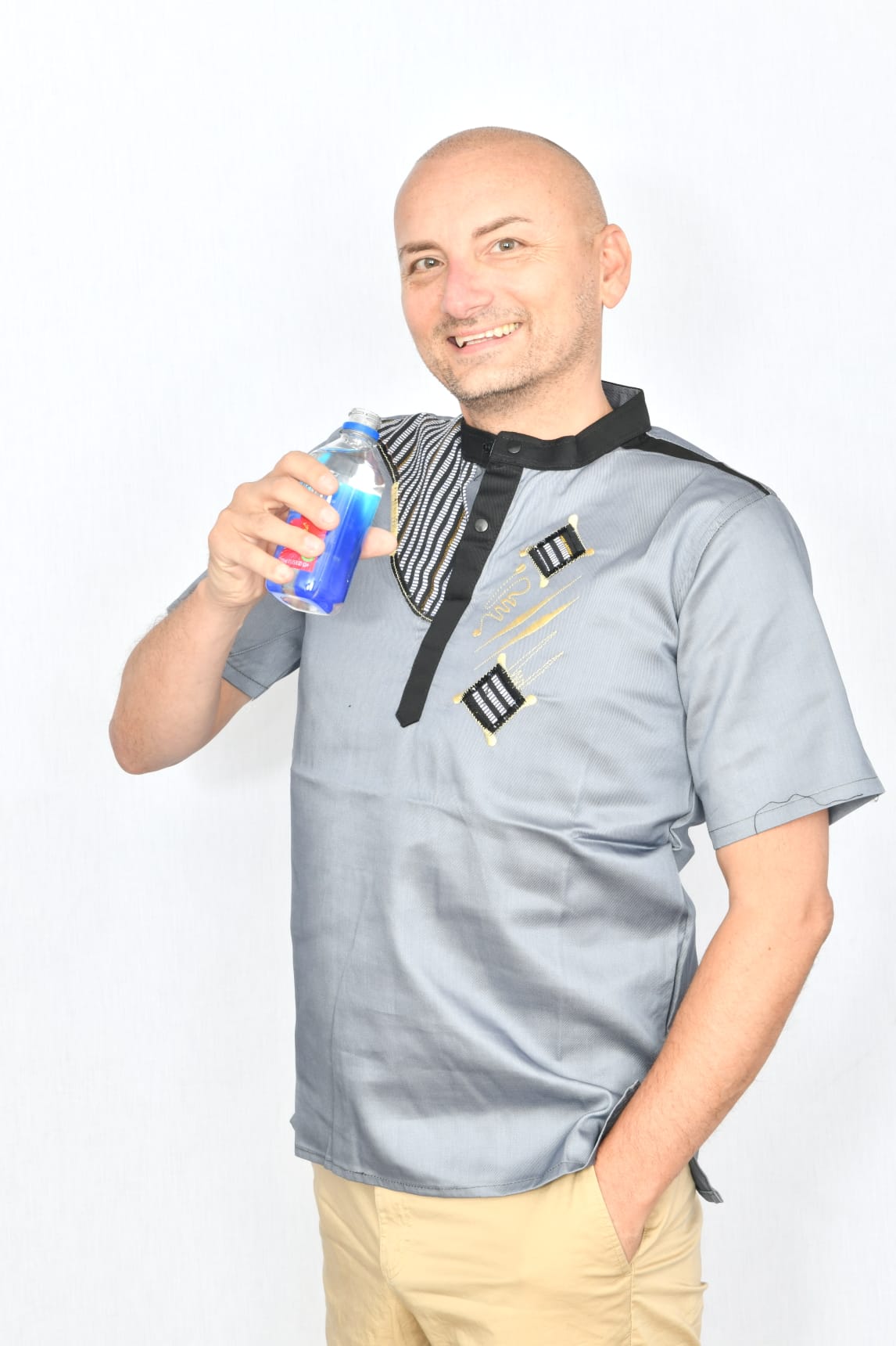 Akwaba Men's Shirts Short Sleeve Gray with Black Stripe
