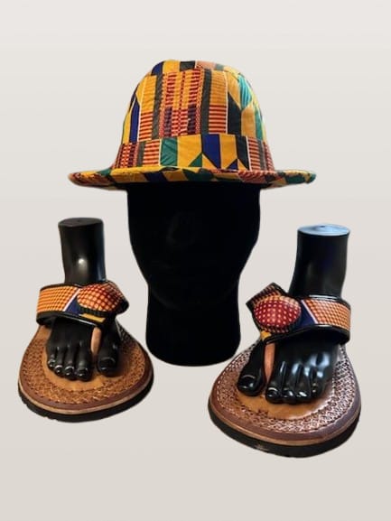 Men's Fedora Hat with Men's /Slipper Kente Orange Pattern